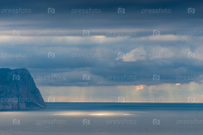 Море и скалистый берег красивый живописный пейзаж с драматическим небом