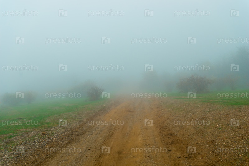 Гусиный туман и грунтовая дорога. Осенний пейзаж в туманный день