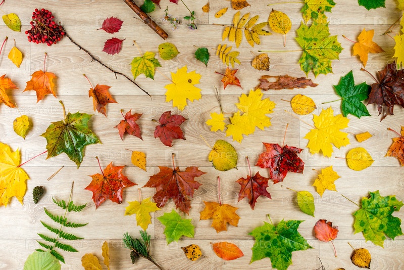 Вид сверху - осенний природный состав из лесных природных объектов на полу