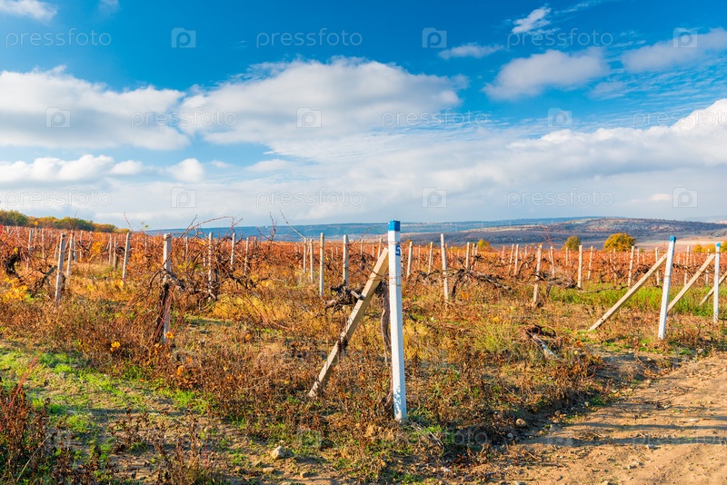 Виноградник после сбора урожая, осенний пейзаж
