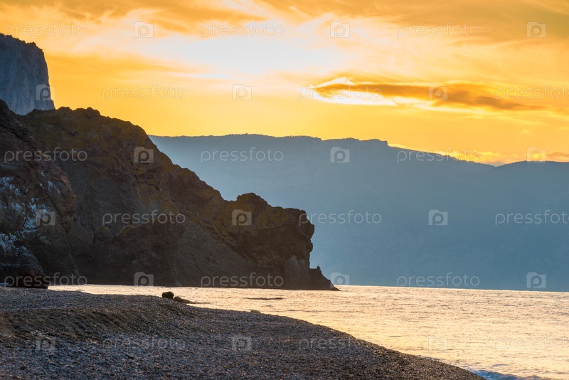 Скалистый берег, прекрасный рассвет на море ранним утром, красивые пейзажи