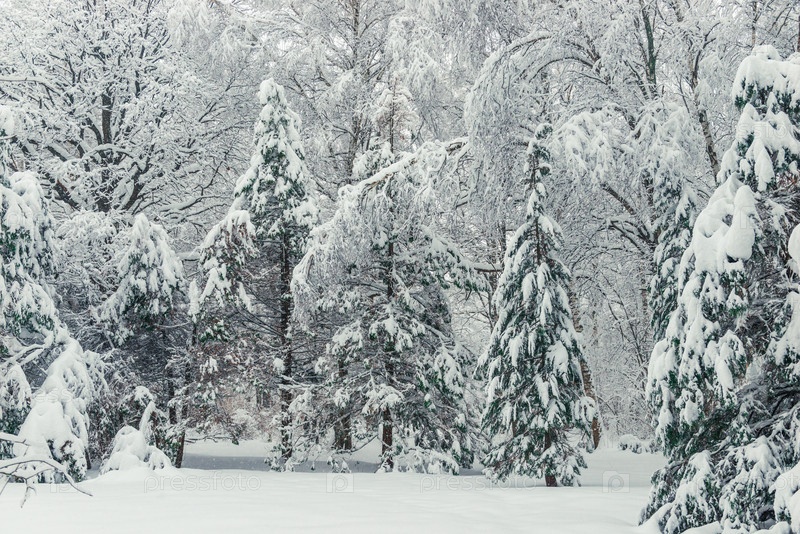Зимняя фотография - горизонтальный зимний пейзаж, елки, покрытые снегом