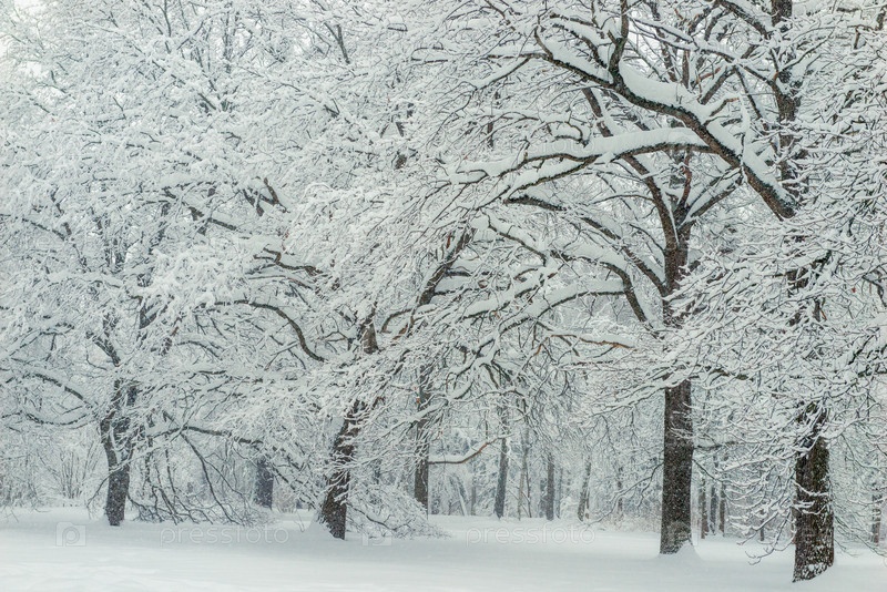 Городской парк с дорожкой, покрытой снегом, лес после снегопада, красивый пейзаж