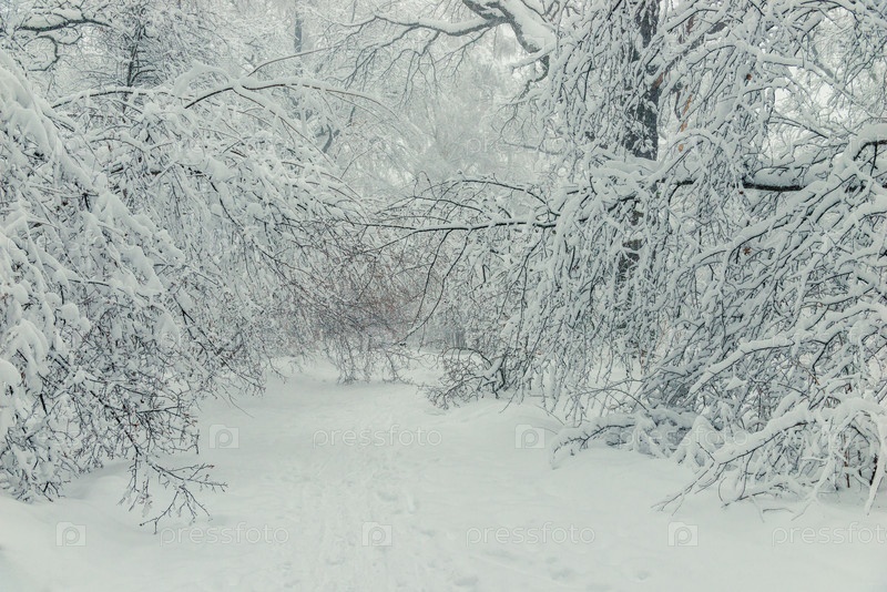 Пейзаж в зимнем лесу - ветки и дрейфы