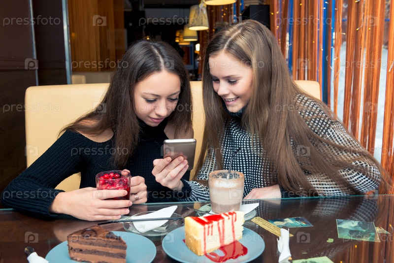 Портрет хороших друзей в кафе с десертом и кофе