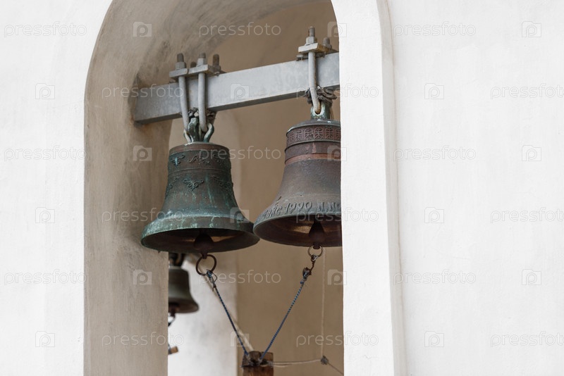Большие тяжелые колокола в колокольне Православной Церкви России