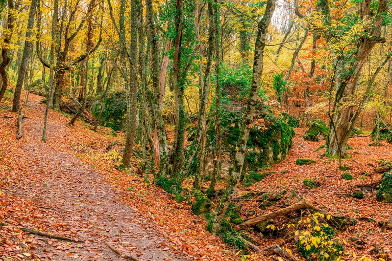 Красивый осенний пейзаж в лесу на склоне горы