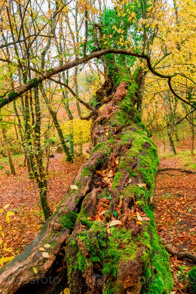 Большое старое дерево, покрытое мхом в осеннем лесу