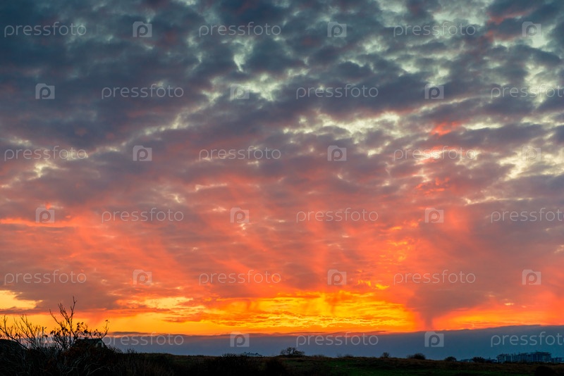 Красивое живописное небо оранжевые облака на закате
