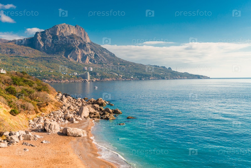 Красивый морской пейзаж в солнечный осенний день, Крым Россия