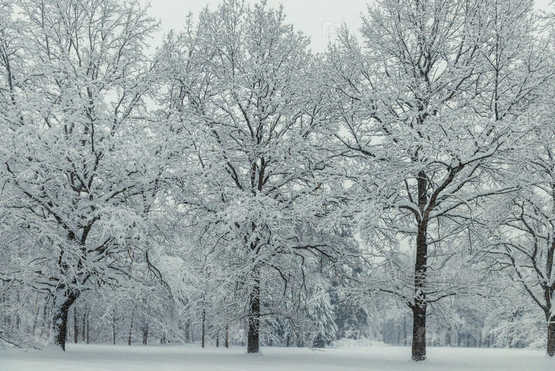 Три дерева покрыты снегом, как бархат, зимний пейзаж