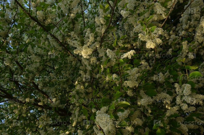 Пышное цветение черемухи в Ботаническом саду Петра Великого в Санкт-Петербурге