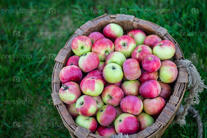 Сочные спелые аппетитные яблоки в корзине. Фрукты. Урожай. Juicy ripe delicious apples in a basket. Fruit. Harvest