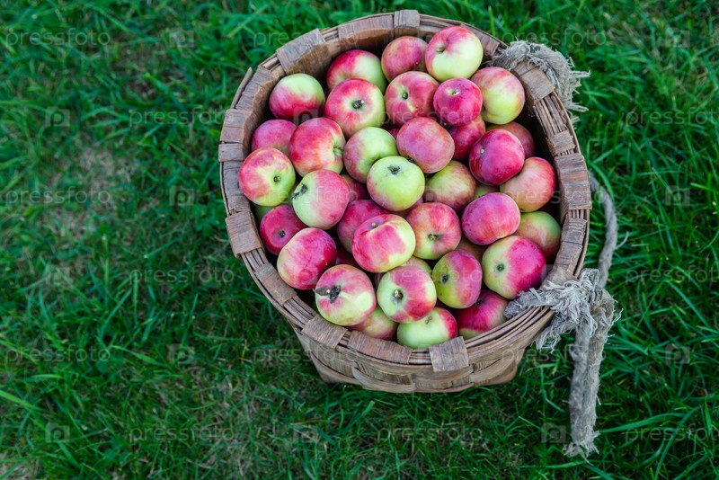 Сочные спелые аппетитные яблоки в корзине. Фрукты. Урожай. Juicy ripe delicious apples in a basket. Fruit. Harvest