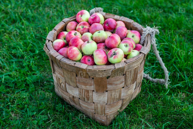 Сочные спелые аппетитные яблоки в корзине. Фрукты. Урожай. Juicy ripe delicious apples in a basket. Fruit. Harvest