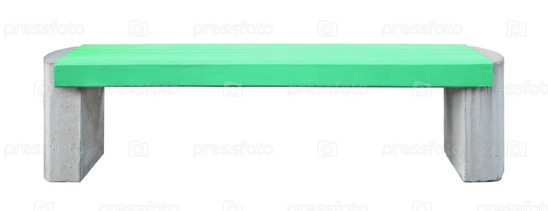 Маленькая скамейка с бирюзовым деревянным сиденьем и каменными ножками, изолированная на белом фоне