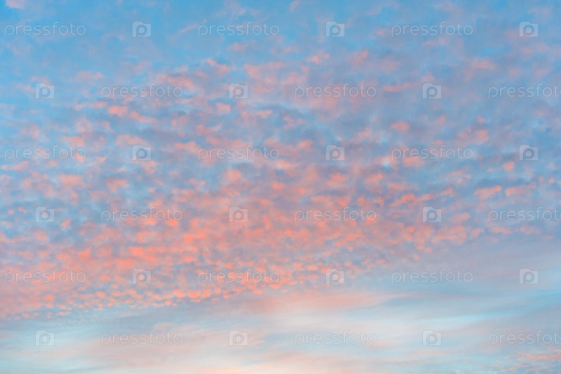 Яркие оранжевые облака циркумулуса на фоне голубого неба
