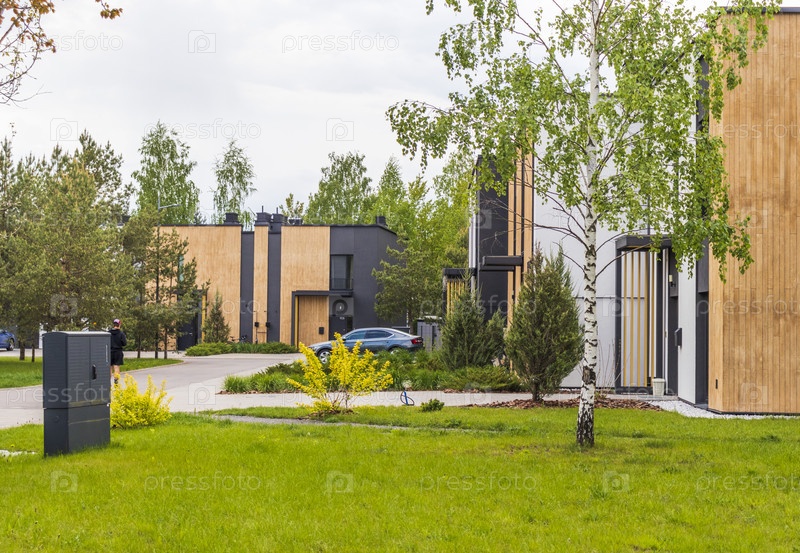 Фасад стильных, городских, современных таунхаусов, эргономично оформленных и изготовленных из экологических материалов. Стиль жизни