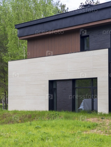 Фасад стильного, городского, современного дома, эргономично оформленного и изготовленного из экологических материалов. Стиль жизни