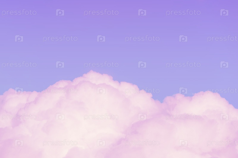 Розовые пушистые облака на мягко фиолетовом небе с копирайтером (фон)