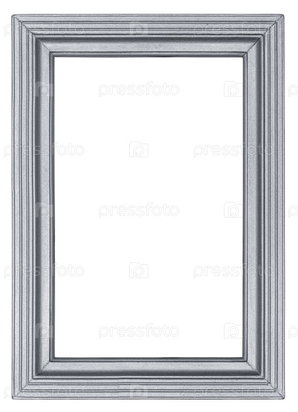 Серебряная деревянная рама с резным линейным рисунком в стиле ретро, изолированная на белом фоне