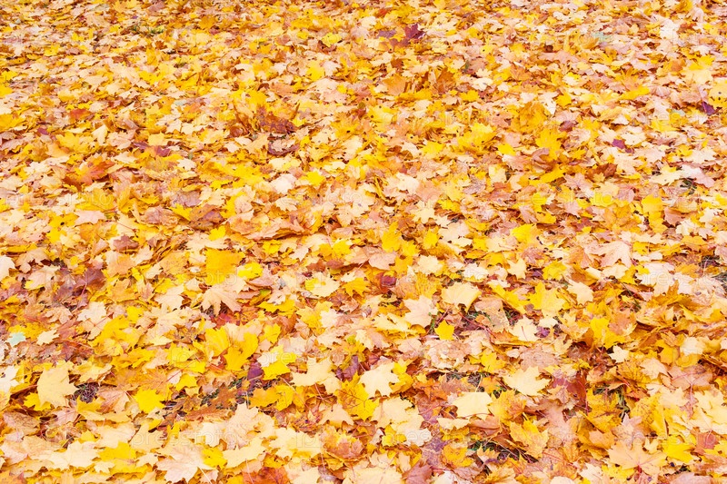 Желтые опавшие листья лежат на земле (текст, фон)