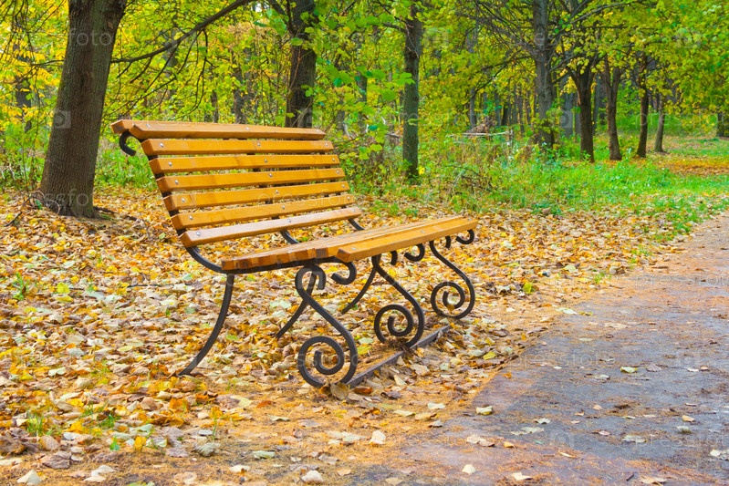 Деревянная скамейка в осеннем парке