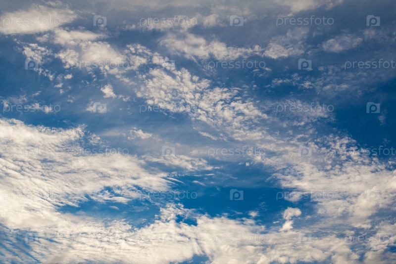 Белые перьевые облака в глубоком синем небе (фон)