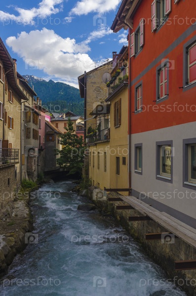 Итальянский альпийский городок. Жилые дома и горнолыжные гостиницы