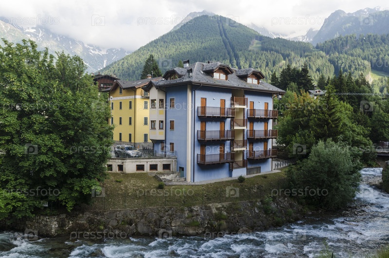 Итальянский альпийский городок. Жилые дома и горнолыжные гостиницы
