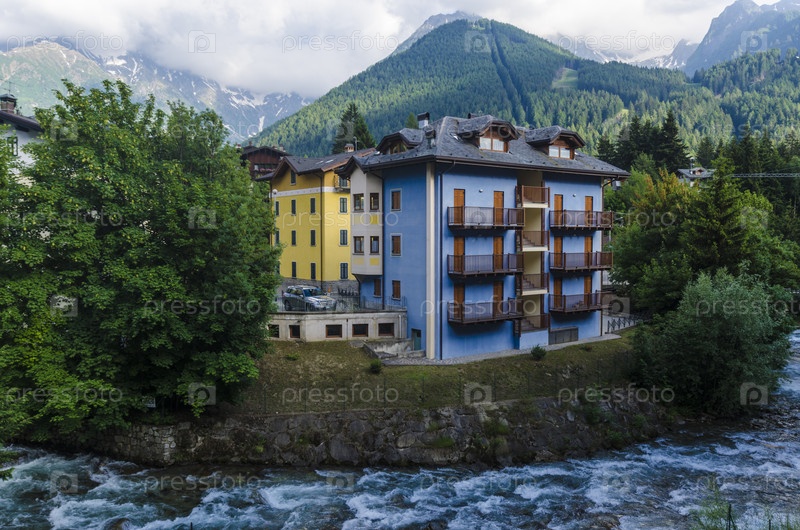 Итальянский альпийский городок. Жилые дома и горнолыжные гостиницы