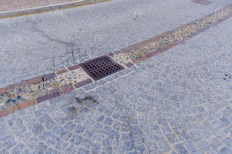Дорога, мощеная булыжником с ливневой канализацией в Европе
