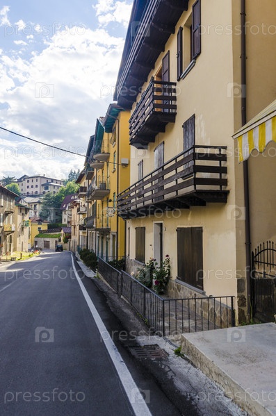 Итальянский альпийский городок. Жилые дома и горнолыжные гостиницы