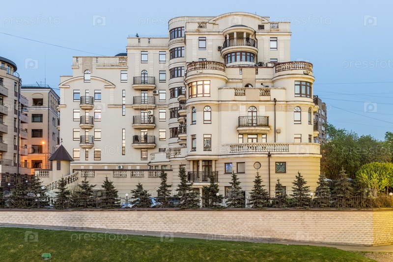Фасад соврменнного многоэтажного жилого дома премиум класса в Москве