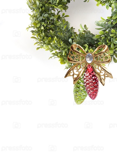 Новогодний зеленый венок изолирован на белом фоне