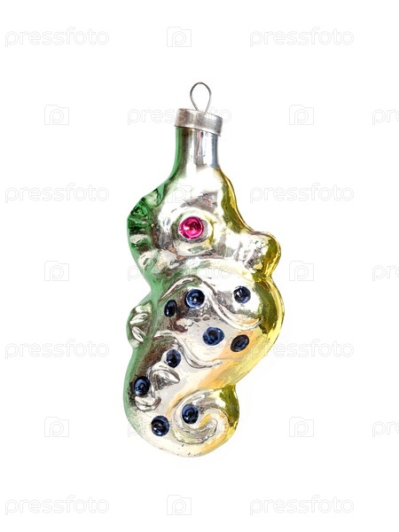 Стеклянная рождественская игрушка (например, морская лошадь или гиппокамп), изолированная на белом фоне