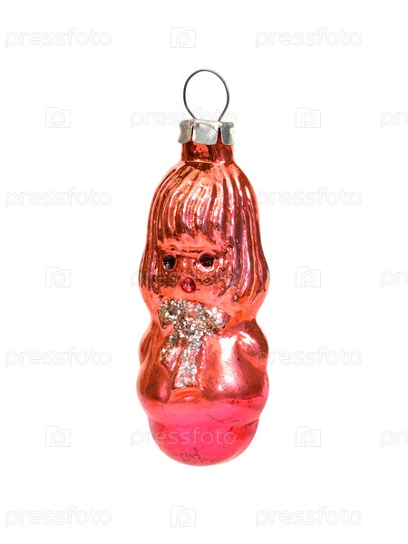 Стеклянная рождественская игрушка (как кукла), изолированная на белом фоне