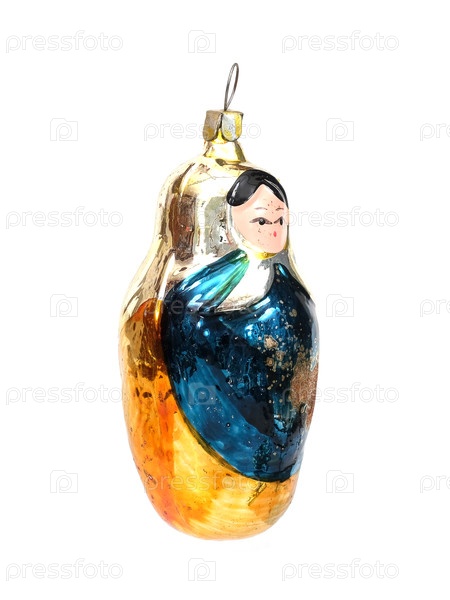 Стеклянная рождественская игрушка (как кукла), изолированная на белом фоне
