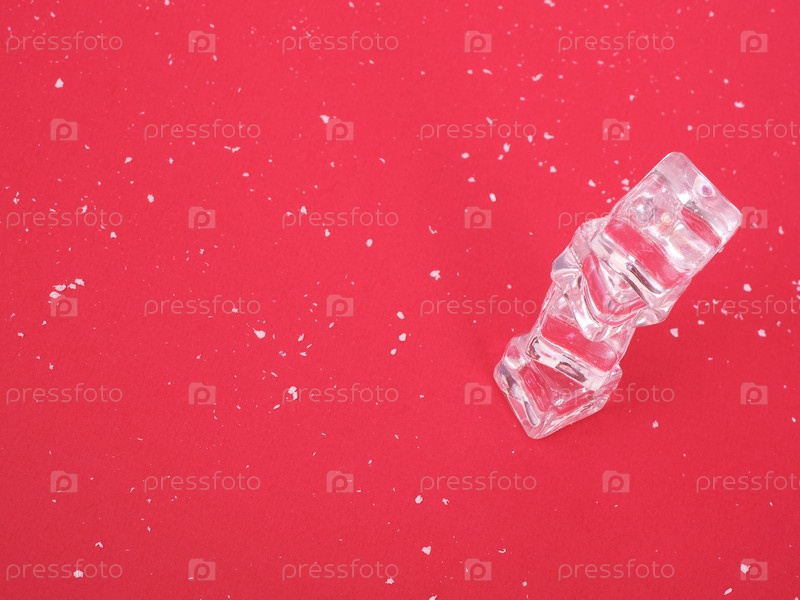 Концепция изолированного новогоднего плаката с белым снегом и льдом на красном фоне