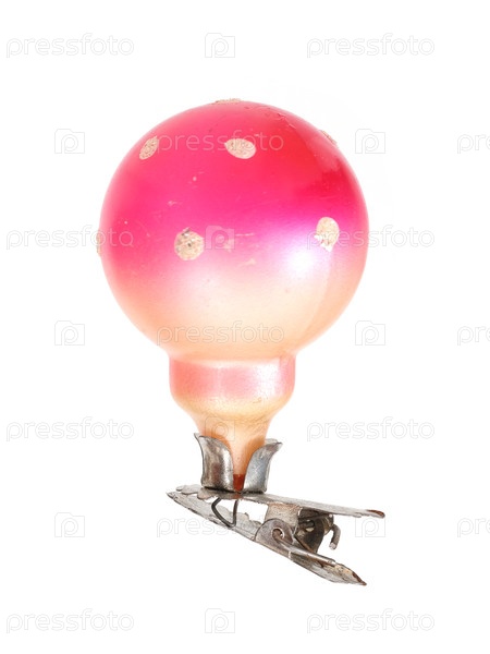 Стеклянная рождественская игрушка (как гриб) изолирована на белом фоне