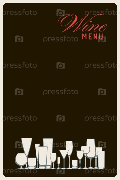 Векторный шаблон для алкогольного меню с бокалами для напитков