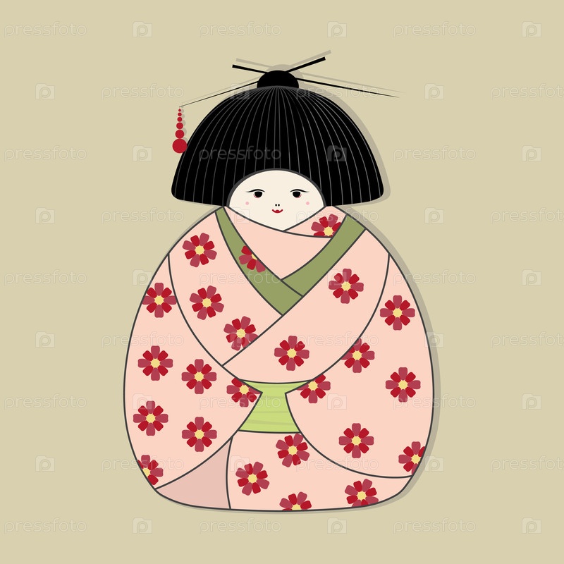 Векторная графика: Японская кукла в традиционном национальном костюме