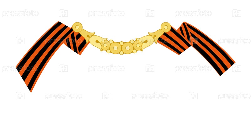 Векторная композиция с георгиевской лентой и золотой цветочной гирляндой (шаблон плаката ко Дню Победы 9 мая)