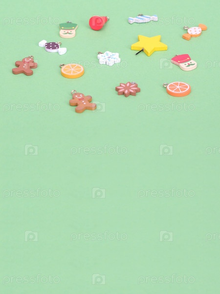 Зеленый рождественский фон с маленькими рождественскими игрушками