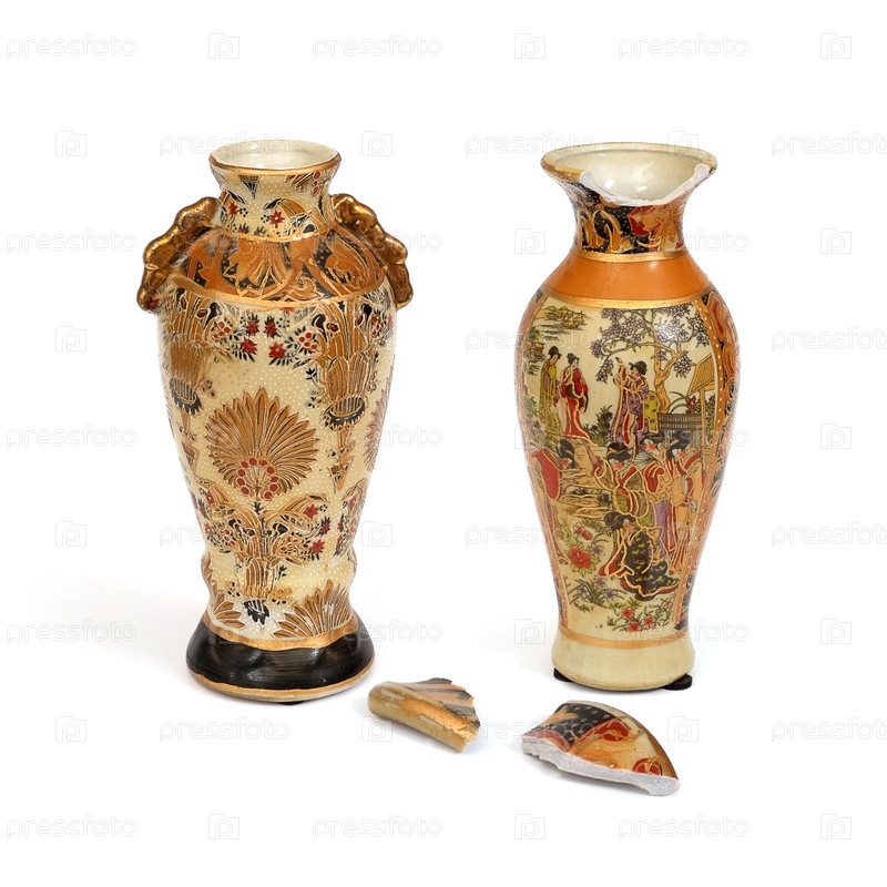 Сувенирные китайские вазы в древних традициях изолированы на белом фоне