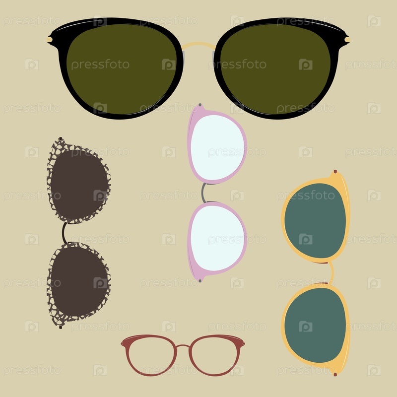 Очки и солнцезащитные очки, изолированные на светлом фоне для нанесения на портрет