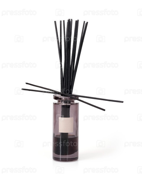 Стеклянный диффузор с ароматом, выделенным на белом фоне