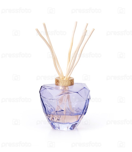 Стеклянный диффузор с ароматом, выделенным на белом фоне