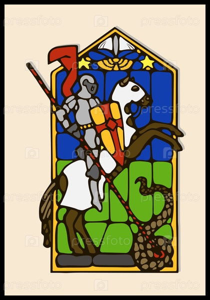 Векторное витражное окно со святым Георгием и драконом