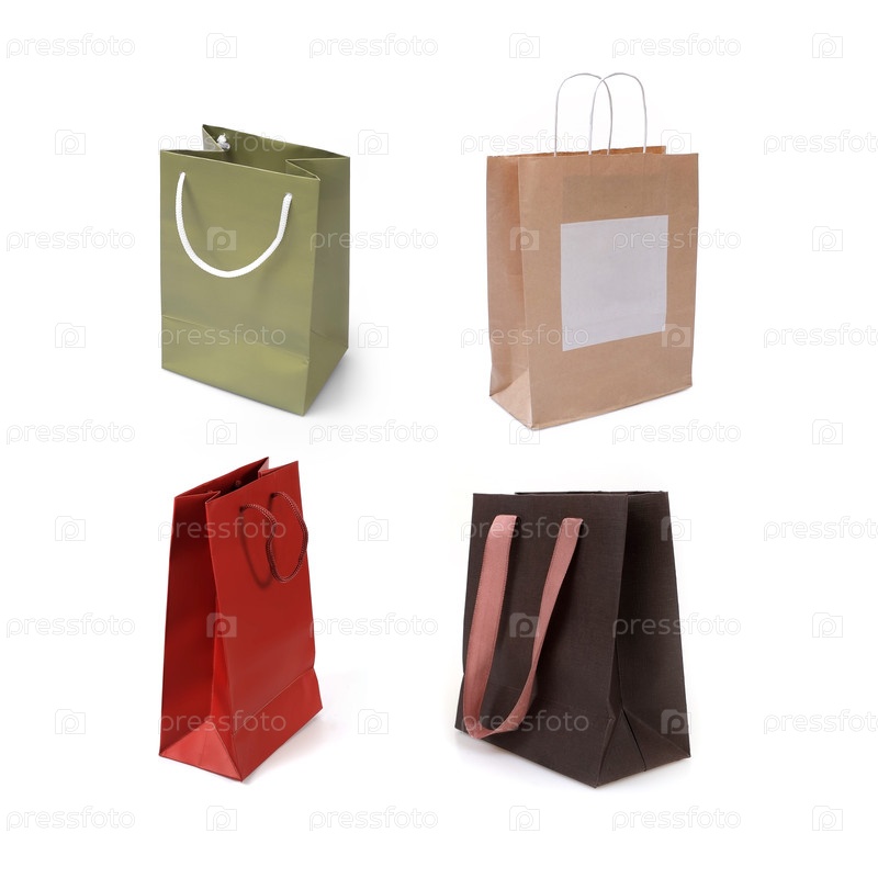 Цветные бумажные пакеты, выделенные на белом фоне